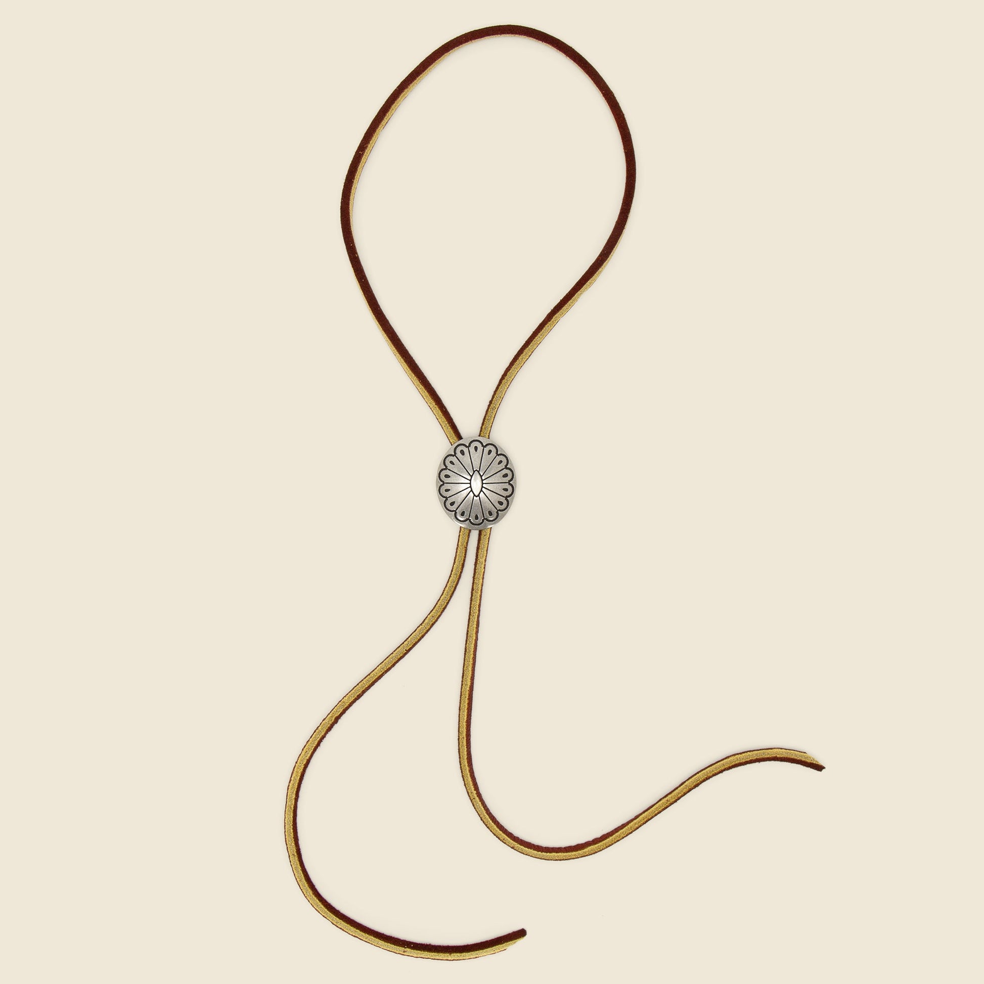 Leather Bolo Tie with Concho - Brown/Turquoise